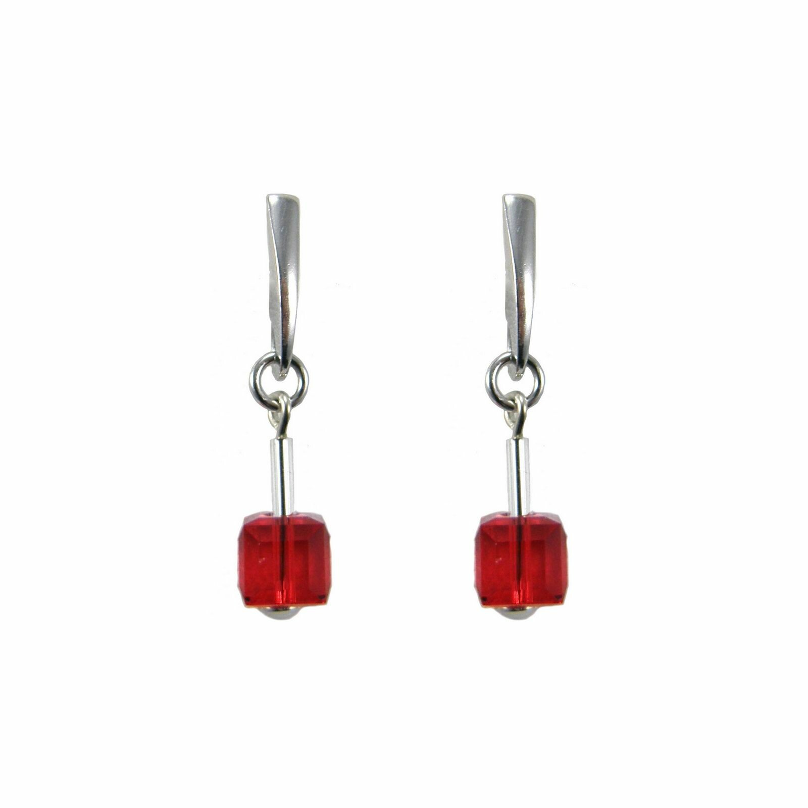 Boucles d'oreilles Indicolite Pixel Carré en argent et cristaux rouges