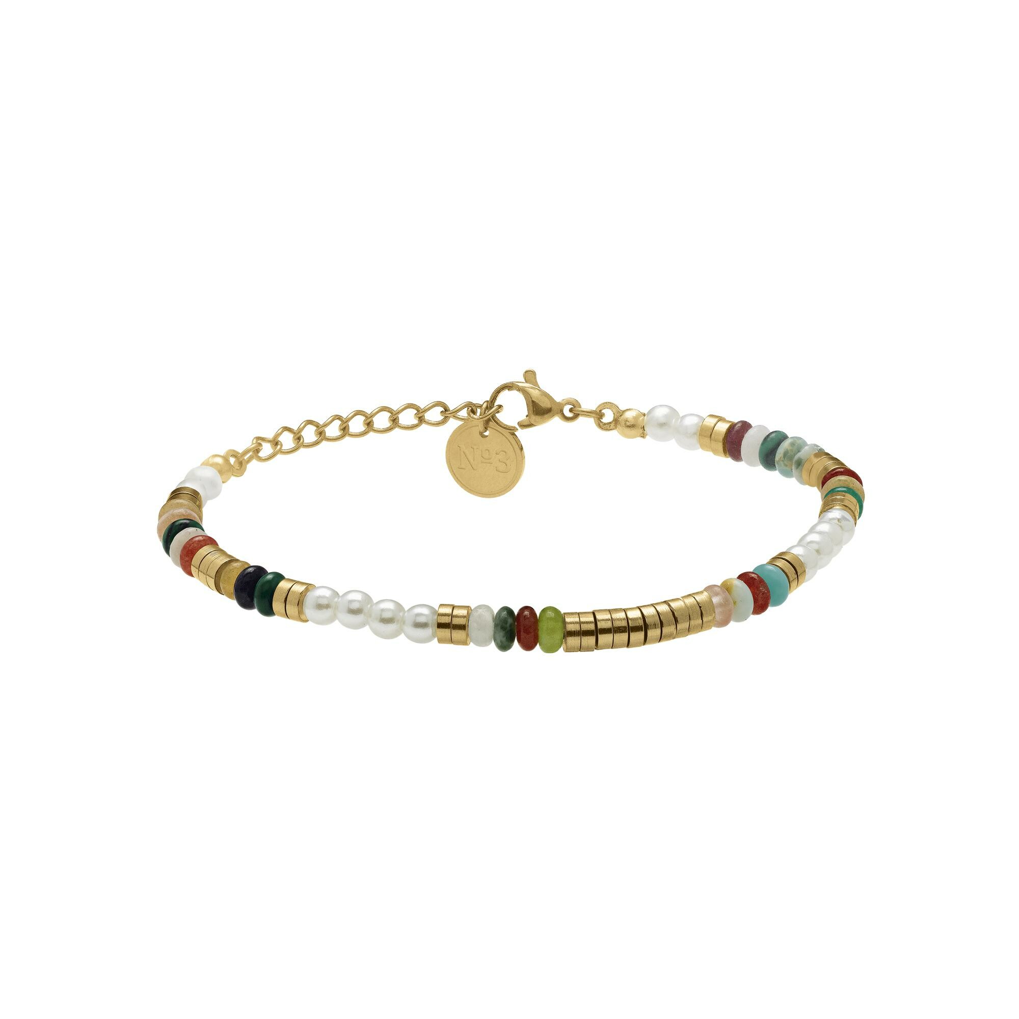 Bracelet N°3 Bijoux en acier doré et perles multicolores